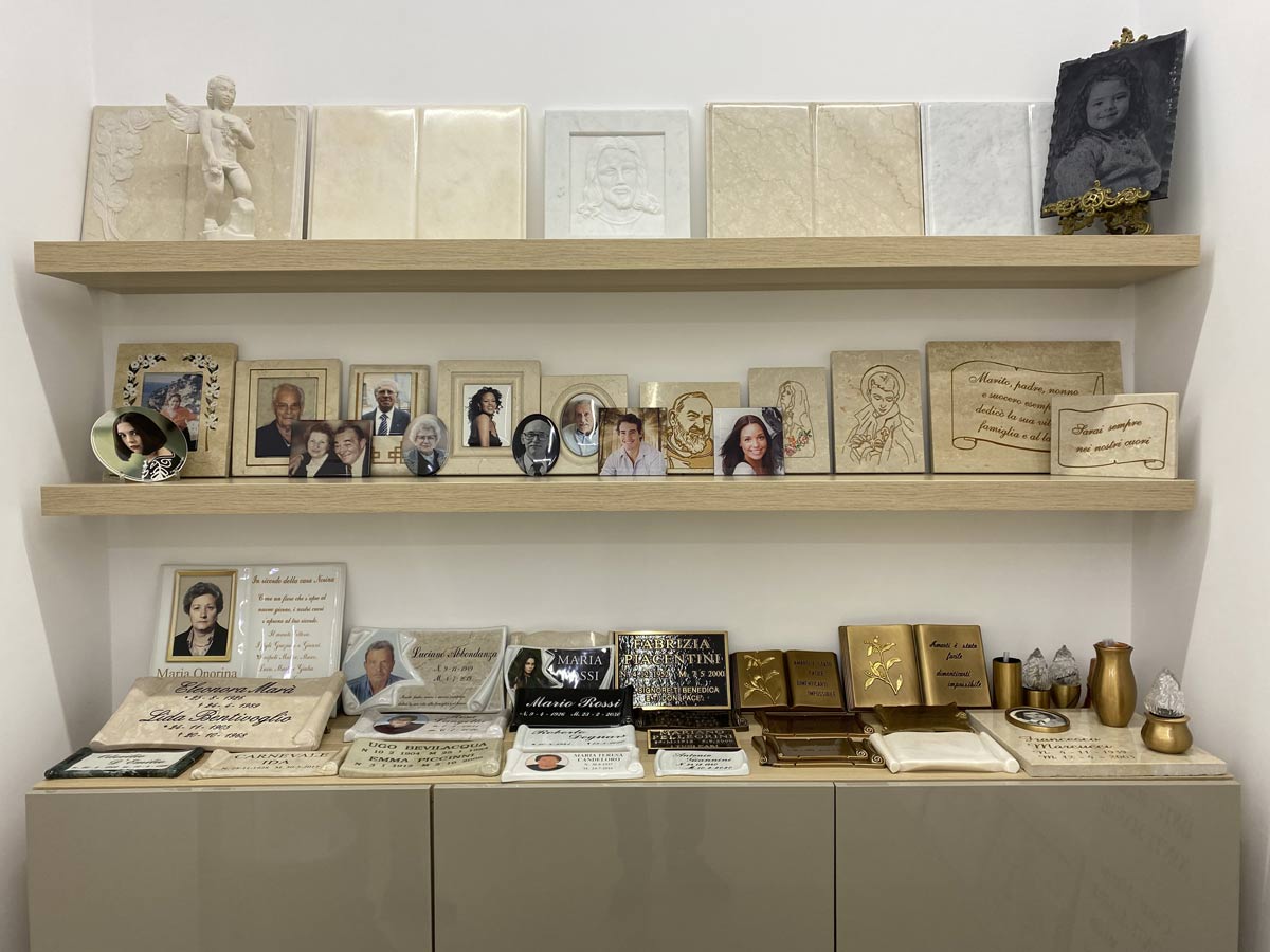Le Onoranze Funebri La Floreale forniscono una vasta gamma di articoli funerari utili a onorare la memoria del defunto durante e dopo il rito funebre.